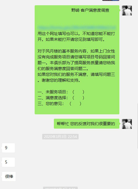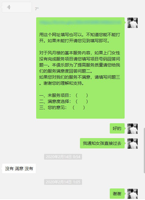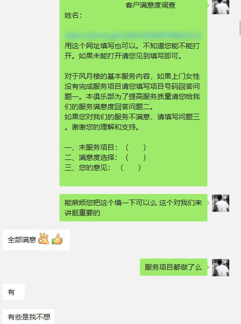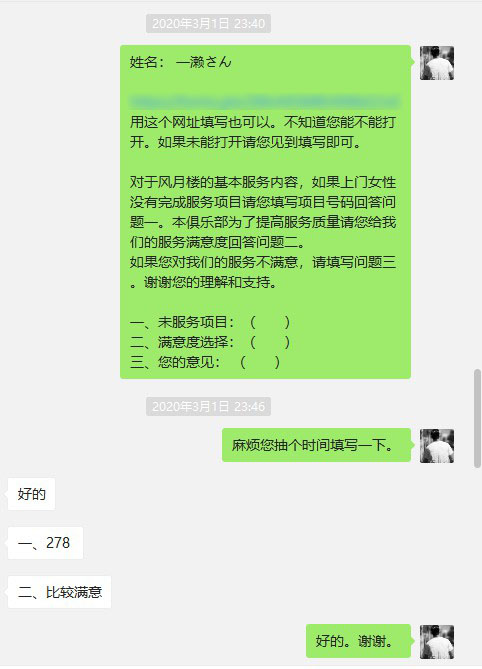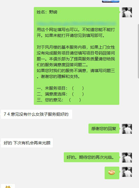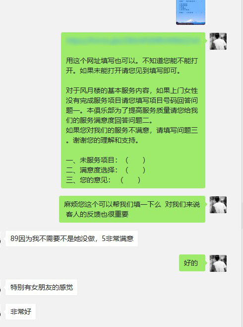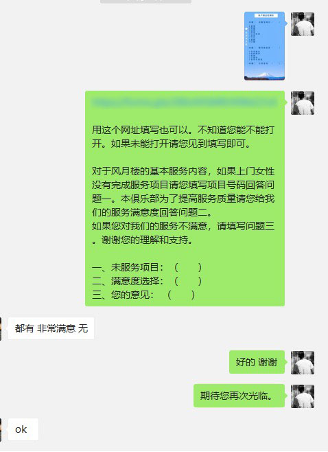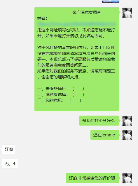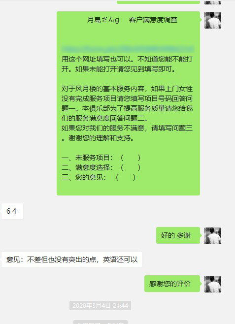 而且在服务结束后,我们还会给您发中文的调查问卷,如果有任何问题,都欢迎您及时反馈、咨询。您还可以为女孩打分,这对我们提高服务水准非常重要。